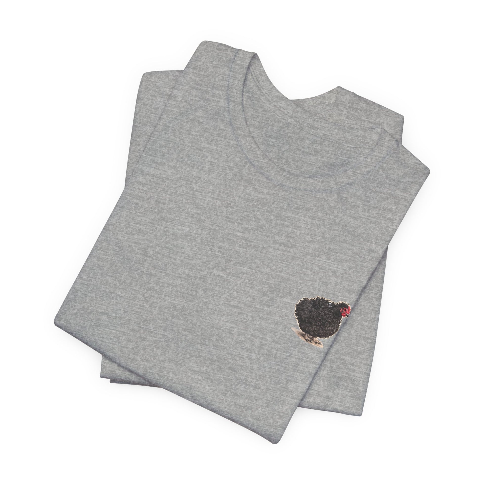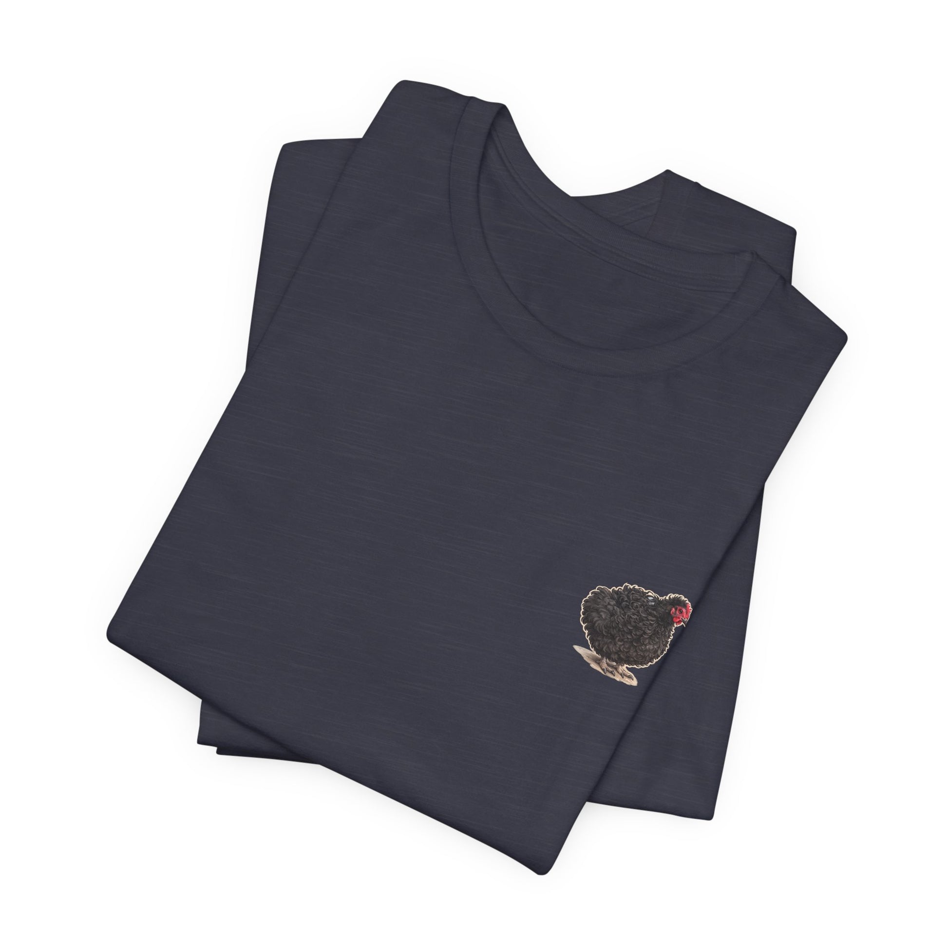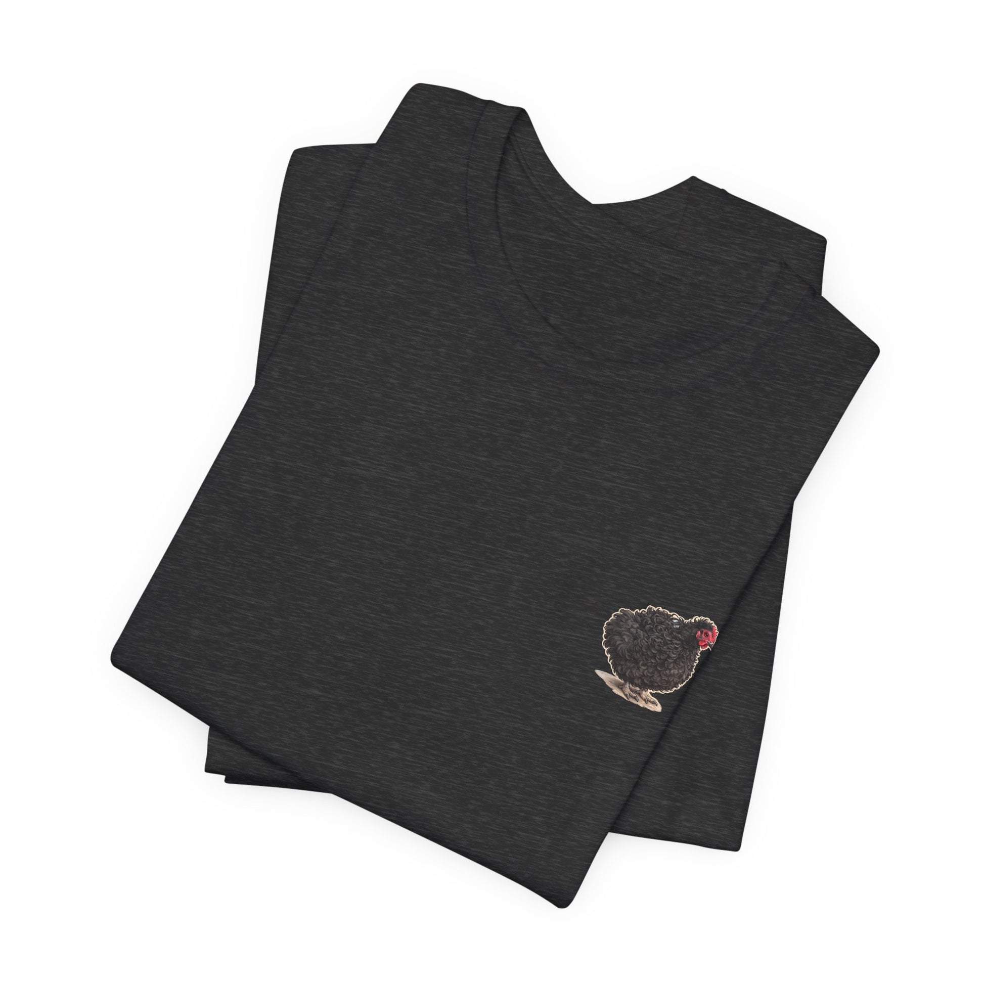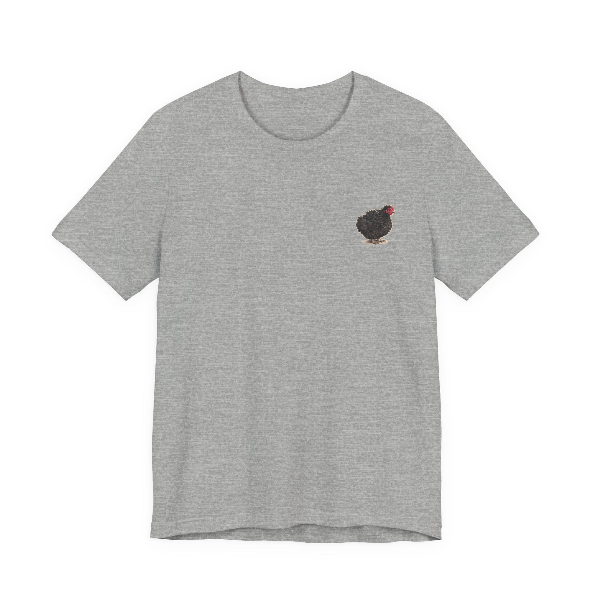 Lightweight, breathable, and quietly bold — this jersey tee carries a warm, backyard-country personality. A tiny Lil Frizz sits over the heart while the back wears a vintage-style rescue badge: detailed linework, earthy greens, and sun-faded golds that read like a well-traveled patch. The fabric drapes easily for everyday movement and layers cleanly under a flannel or jacket. Wear it on morning chores, market runs, or low-key meetups with other poultry lovers; it’s made to feel lived-in from day one and to spark smiles without shouting for attention.
