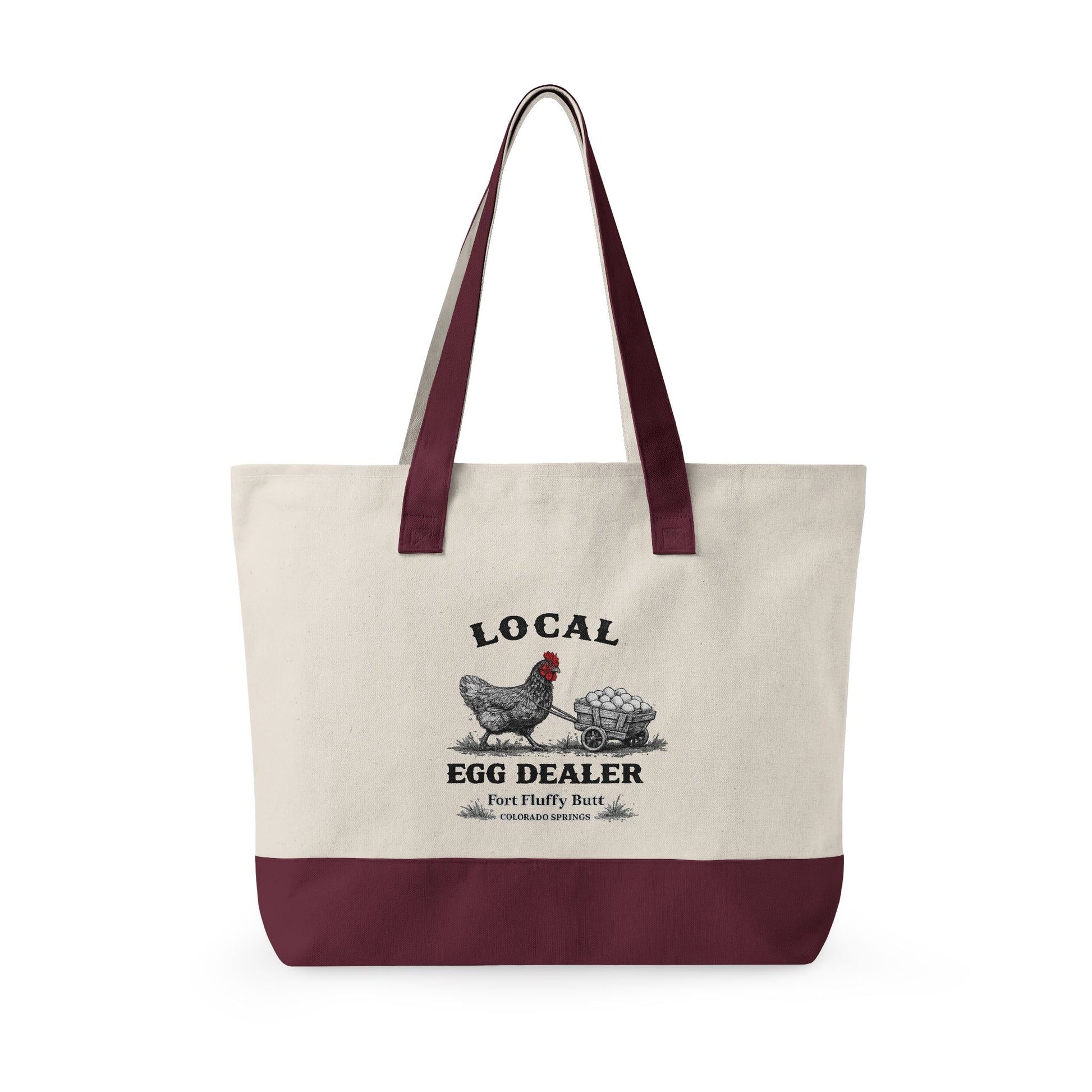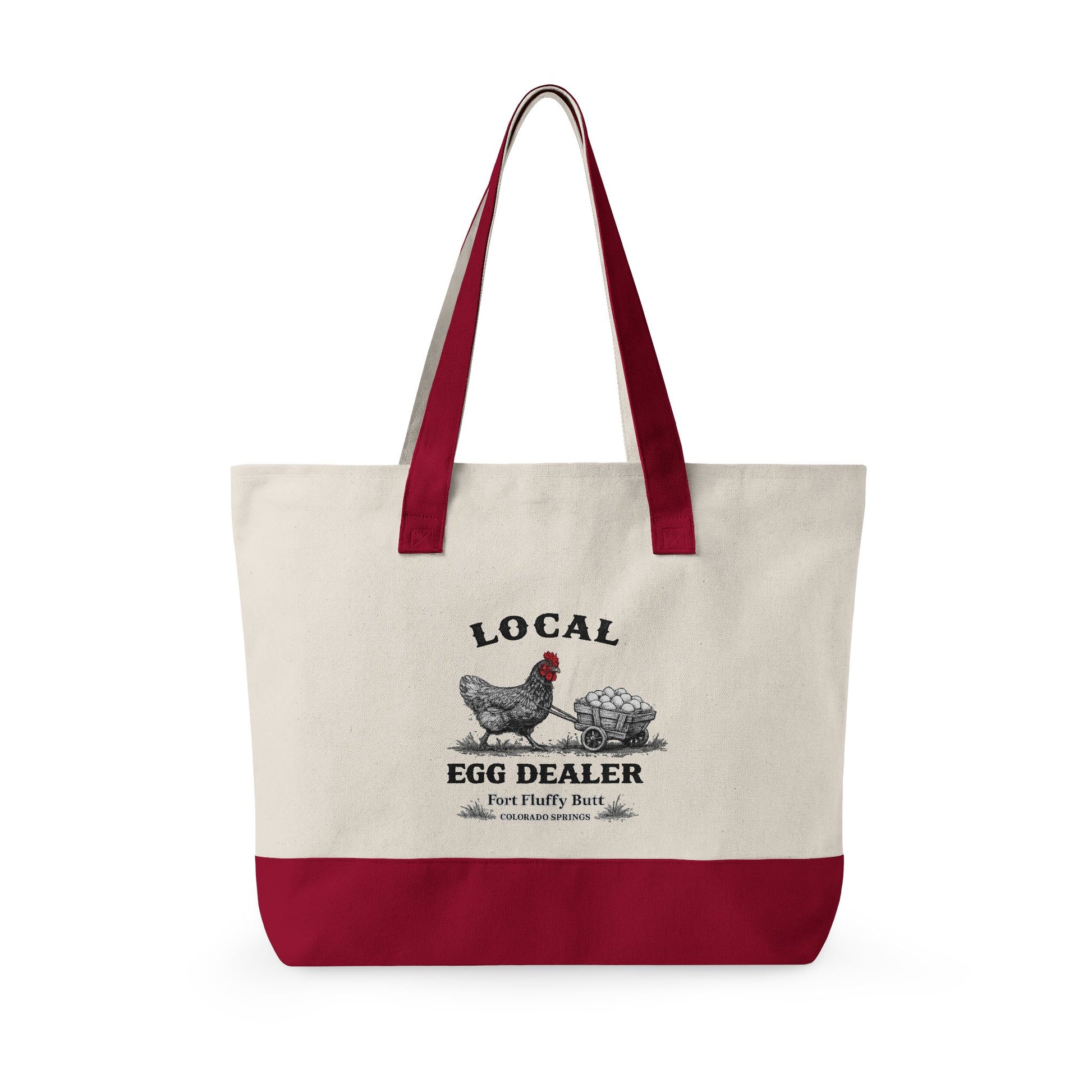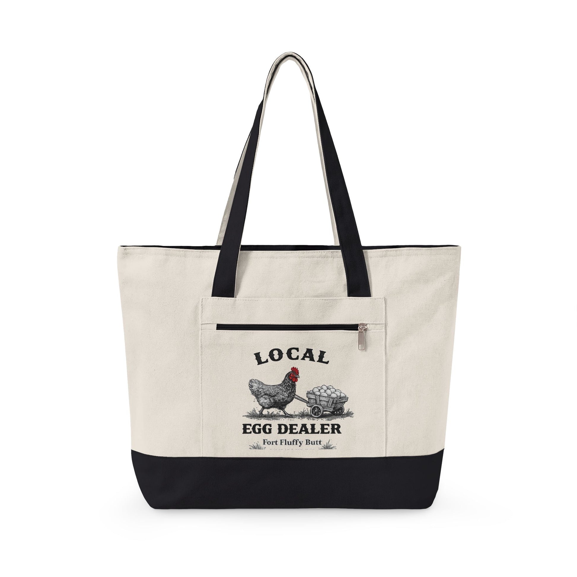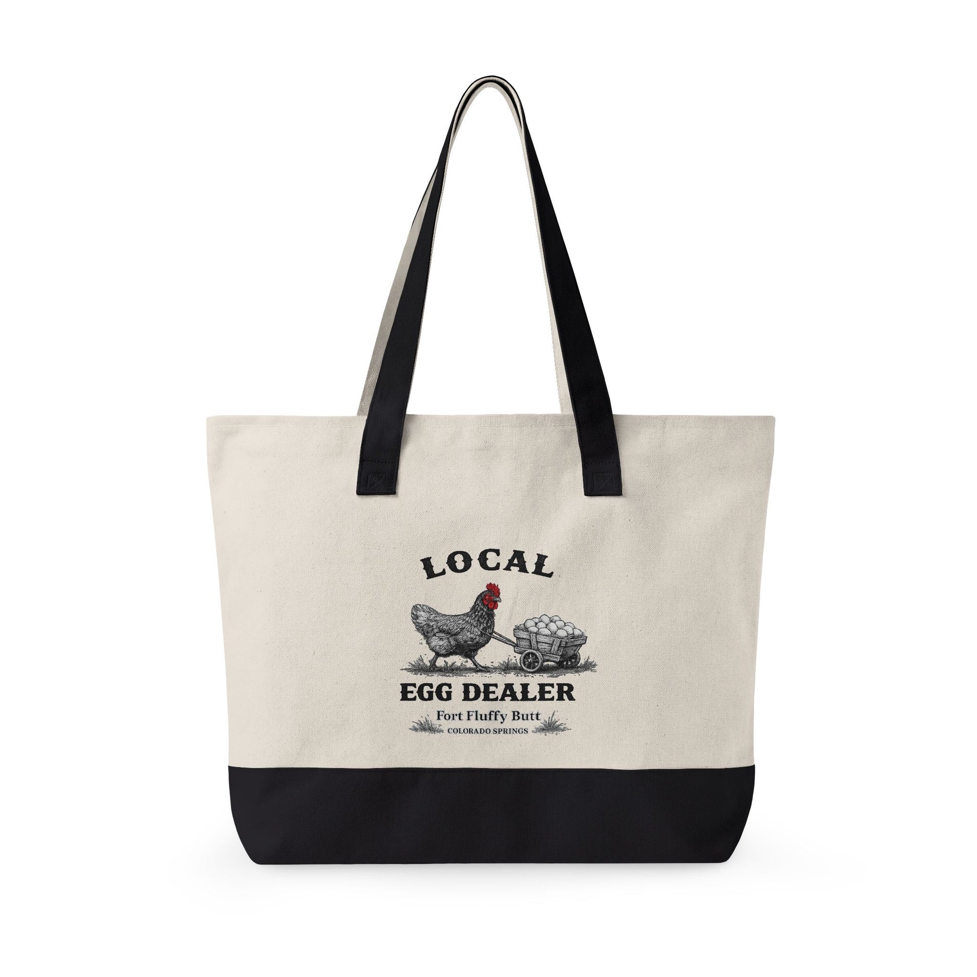 This Local Egg Dealer tote bag is made for backyard chicken keepers, homesteaders, and anyone who knows eggs are basically currency.