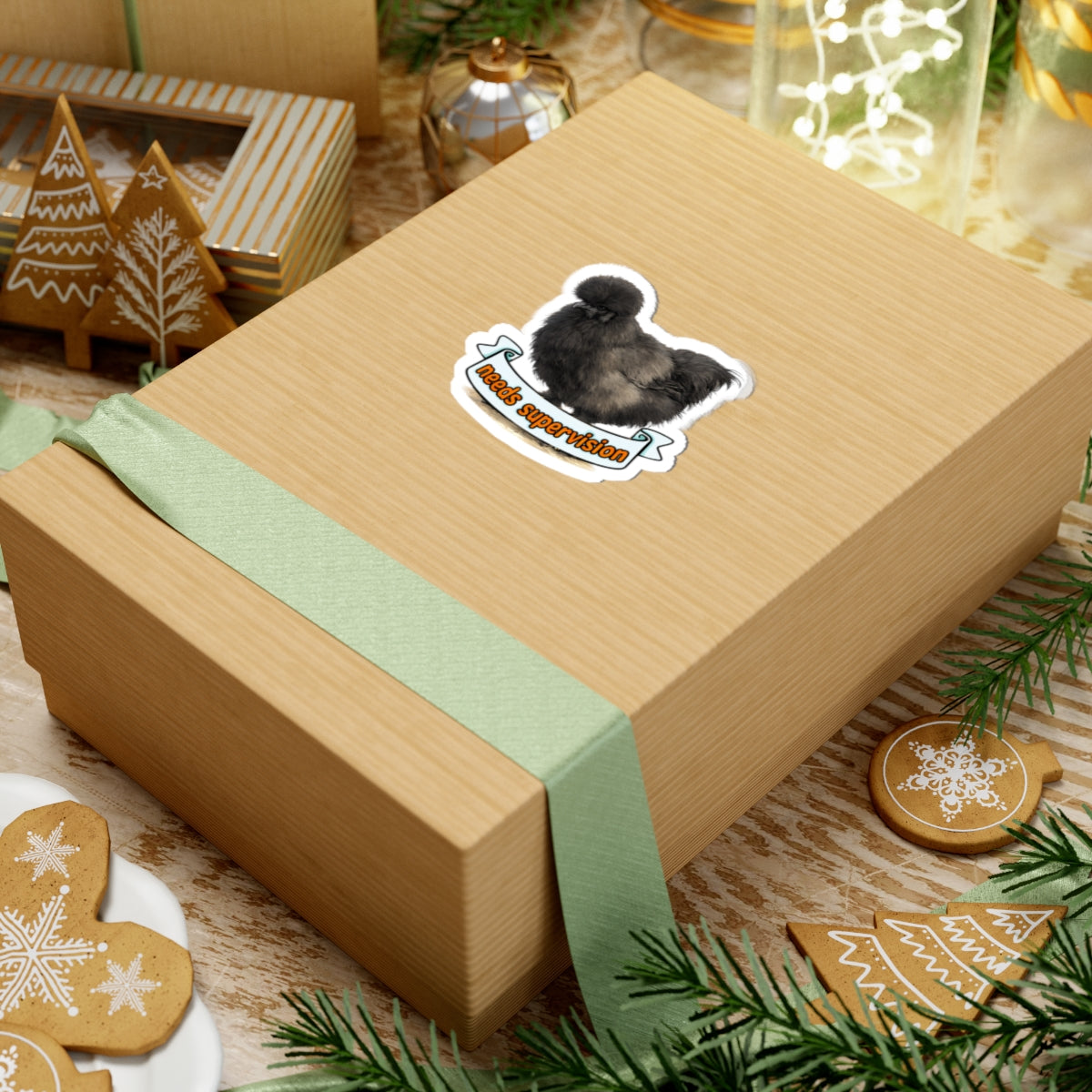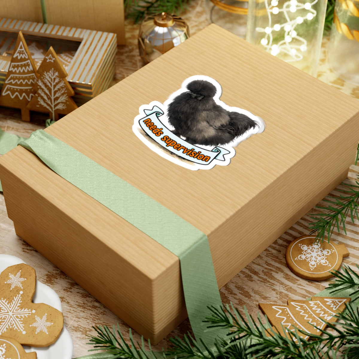 Needs Supervision Basil The Silkie Chicken Sticker | Kiss-Cut Sticker
